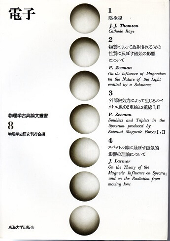 物理学史研究刊行会/編 広重徹/担当編集委員 J・J・トムソン、P・ゼーマン、P・ゼーマン、J・ラーモア、H・A・ローレンツ、J・J・トムソン/収録順 東海大学出版会 1975年7月10日第5刷(第1刷は1969年)